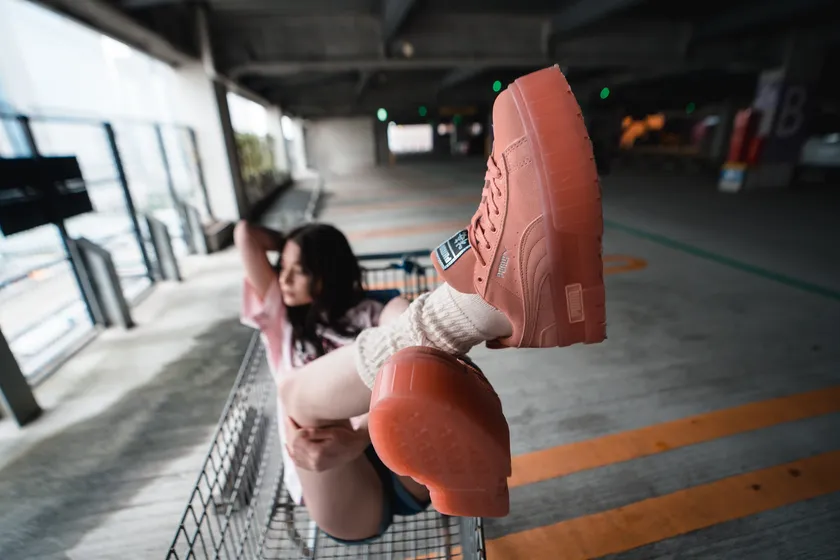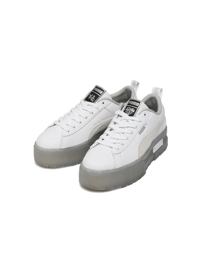 前回、レディースで人気を集めた厚底スニーカー『CALI WEDGE』に引き続き、PUMA新作の『MAYZE』が登場。今回は今までにないスウェード素材やクリアソールを使用したコラボ企画完全オリジナル商品となっております。また、スニーカーだけでなくTシャツ、ステッカーも加わり計3型をリリースします。