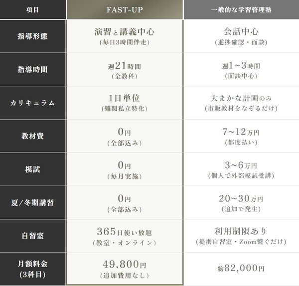 【衝撃】FAST-UP逆転塾が、週7回3時間・3科目フルサポート49,800円に。