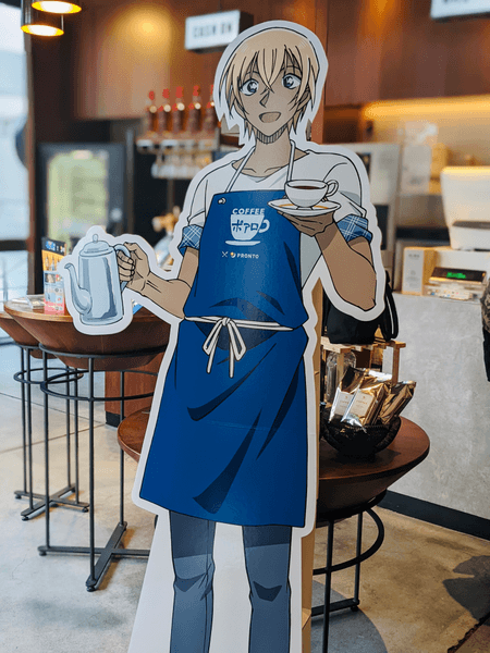 また、4月22日(金)から5月29日(日)までのコラボ期間中、PRONTO 渋谷フクラス店が特別な装飾を施した旗艦店としてオープンしています。お馴染みの喫茶ポアロの外観をイメージした装飾や、安室透のスタンディパネル、「名探偵コナン ゼロの日常(ティータイム)」場面カットの数々が登場。