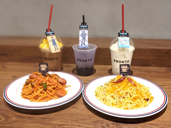 全国のプロントで販売しているコラボメニューはドリンク3種とパスタ2種の全部で5種類。「安室透のパンプキンティーラテ」は、パンプキン風味のミルクティーにたっぷりのホイップとパンプキンソース&パウダーをトッピングした、安室透をイメージしたドリンクです。「トリプルフェイスシトラスティー」は、レモン風味のブラックゼリーにグレープフルーツジュース、バタフライピーティーのハーブティーを合わせました。「愛犬ハロのバニララテ」は、バニラシロップ入りのミルクに、たっぷりのホイップとホワイトチョコスライスをトッピング。
