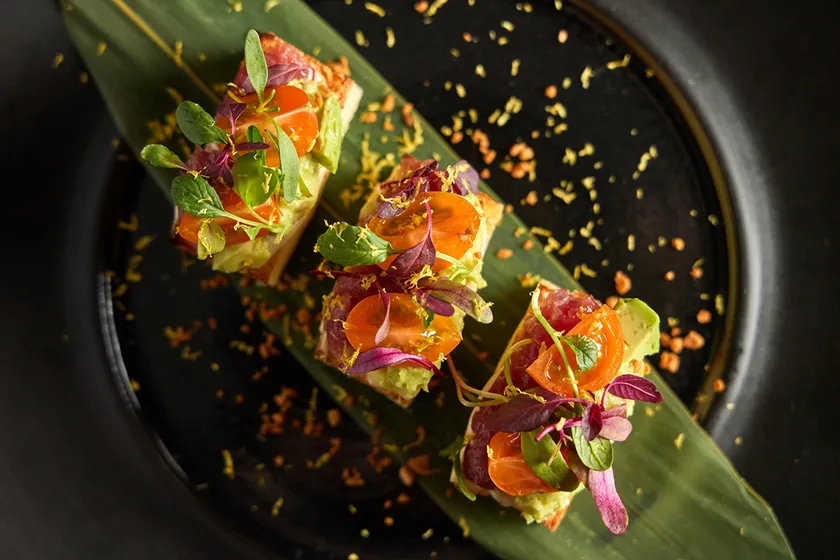 炙ったマグロとアボカドをトーストしたデニッシュに、ローストしたガーリックを使ったアイオリソースとコリアンダーをスパイスにしました。