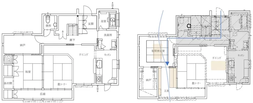 富沢さんのお住まいの間取り リフォーム前/リフォーム後