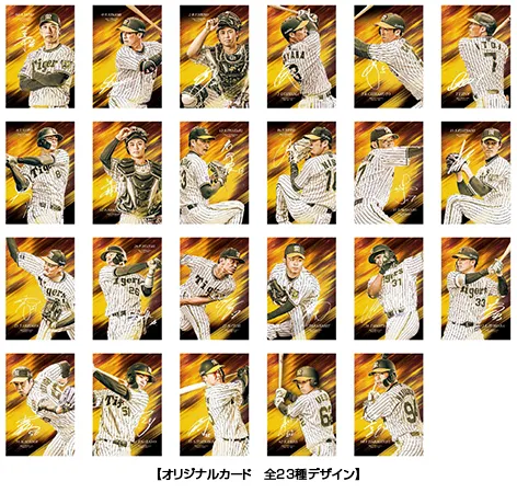 阪神甲子園球場内売店及び外周お弁当ワゴンで「監督・選手コラボグルメ」を1商品ご購入ごとに、阪神タイガースの監督・選手がデザインされた「オリジナルカード(全23種)」を1枚プレゼントいたします。