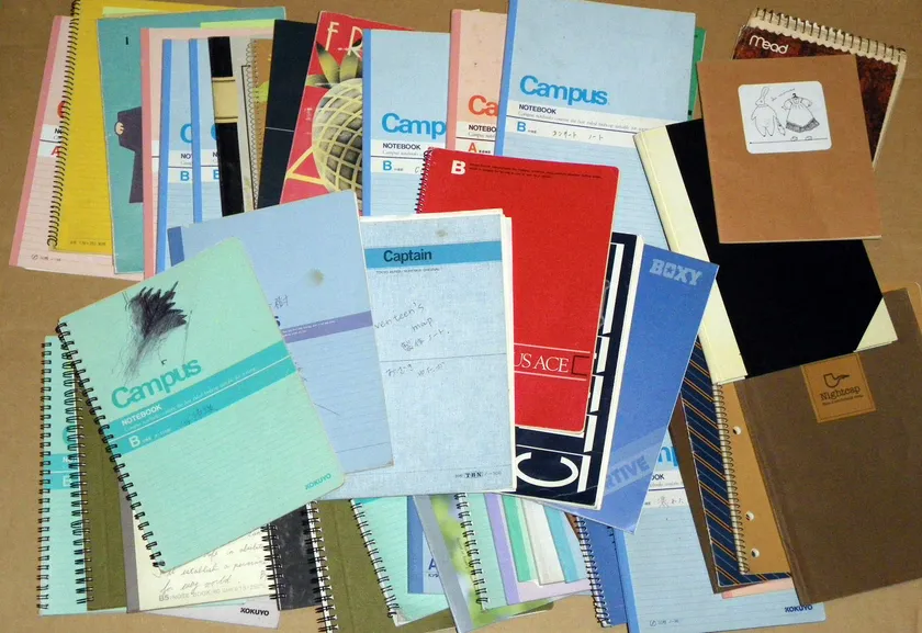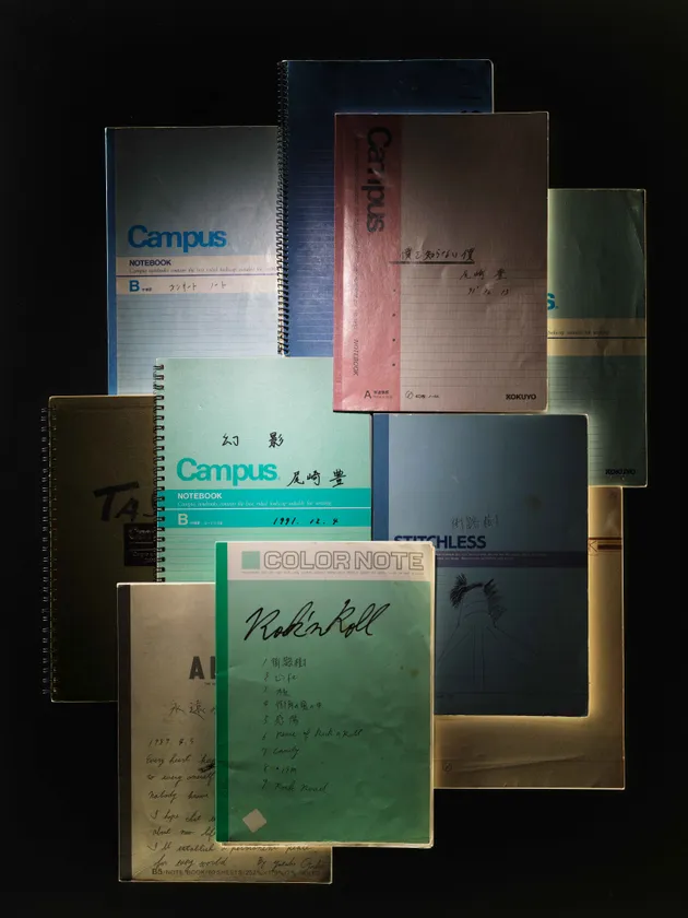 「歌詞や日々の想いを書き溜めた多数のノート」