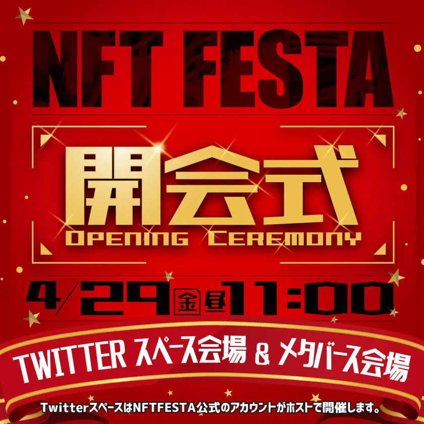 開催当日4月29日(金)11時から、『NFT FESTA 2022SPRING』の開会式をTwitterのスペースで行います。「NFT FESTA」の公式Twitterをフォローの上、ご参加ください。