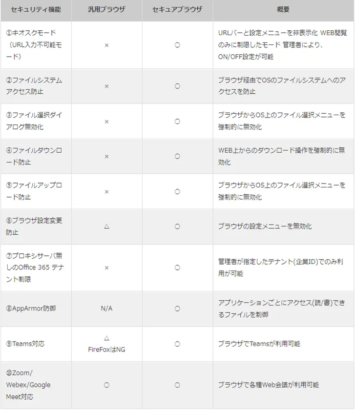 汎用ブラウザとセキュアブラウザの比較