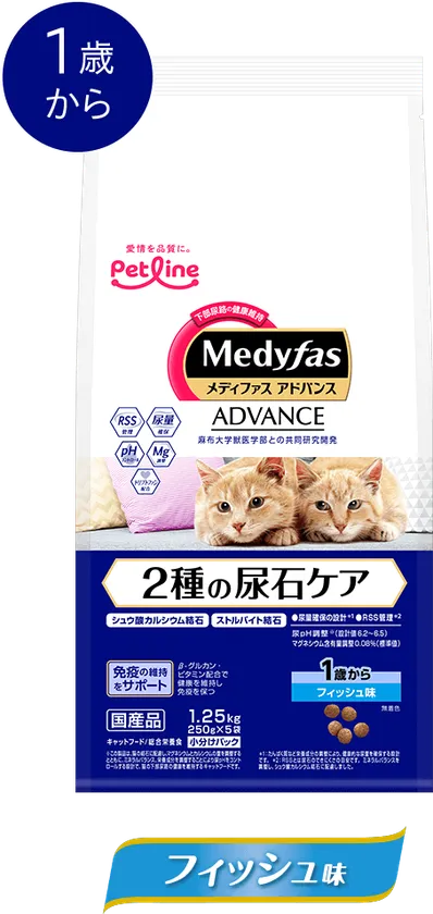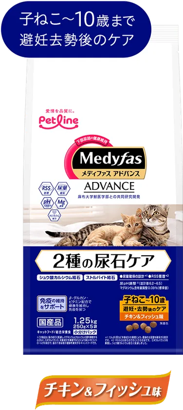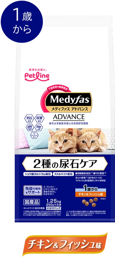 大切な、小さな家族のために進化した、下部尿路の健康維持フード「メディファス アドバンス」から新登場。