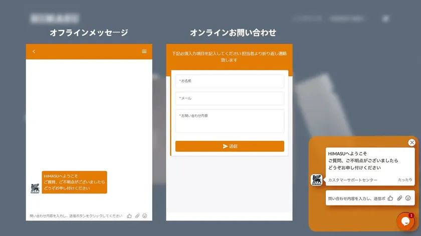 今回のリニューアルでは、HIMASUのブランド理念に基づき、デザインと色調を統一した構成で更に、オンラインチャットサポート機能や製品紹介、製品取り扱い説明、製品保証規定、よくあるご質問検索の専用ページを導入しました。