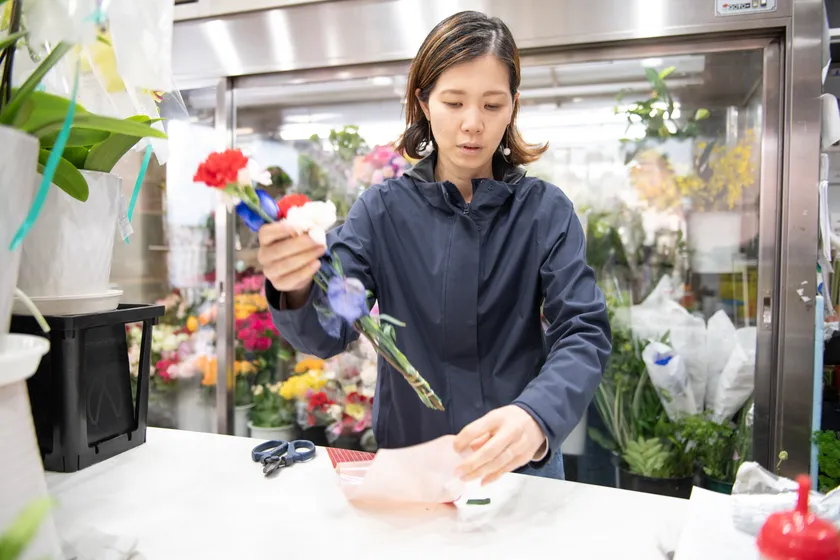 店内で花をセットする様子