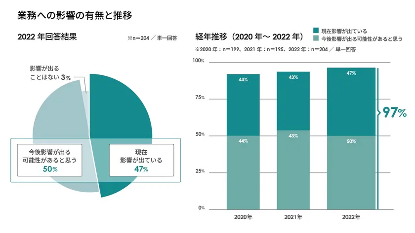 業務への影響の有無と推移