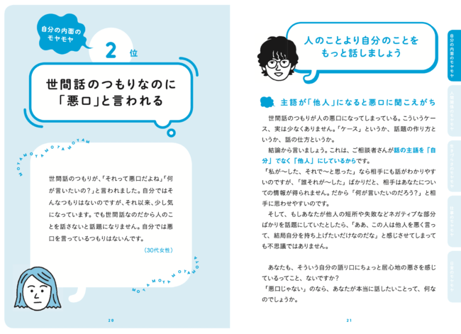みなさんのお悩みが少しでも軽くなるよう、本書の回答部分では著者なりの“ちょっとした別の視点”をたくさん提案しています。