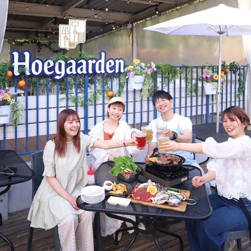 毎年ビアガーデンが人気な両店ですが、今年はアンハイザー・ブッシュ・インベブ ジャパン株式会社と初コラボし、「ヒューガルデン・ホワイト」が飲み放題になるBBQビアガーデンを開催いたします。