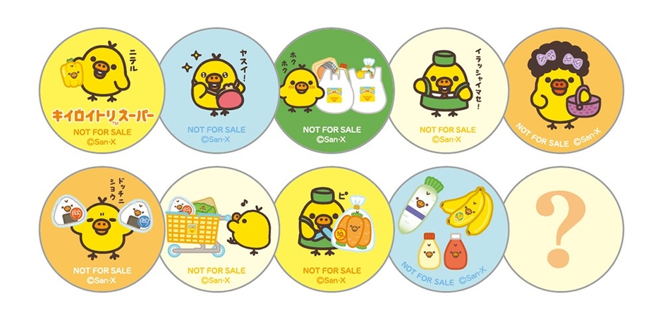 『キイロイトリスーパー』にて税込1,100円お買上げごとに先着で「缶バッジ(ブラインド全10種)」を1個プレゼント!