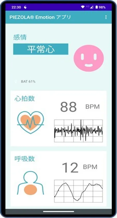 「PIEZOLA(R) Emotionアプリ」画面イメージ