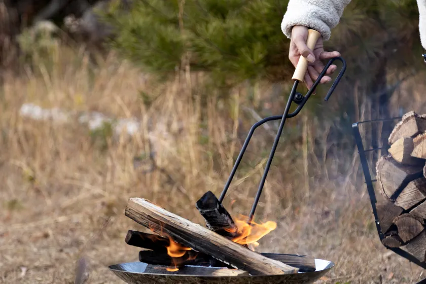 2. 火バサミ:先端部には大きめのギザギザを施しているため、太い薪から細かな枝までしっかり掴める構造。全長が短くなったことで、焚火時の扱いやすさがアップ。