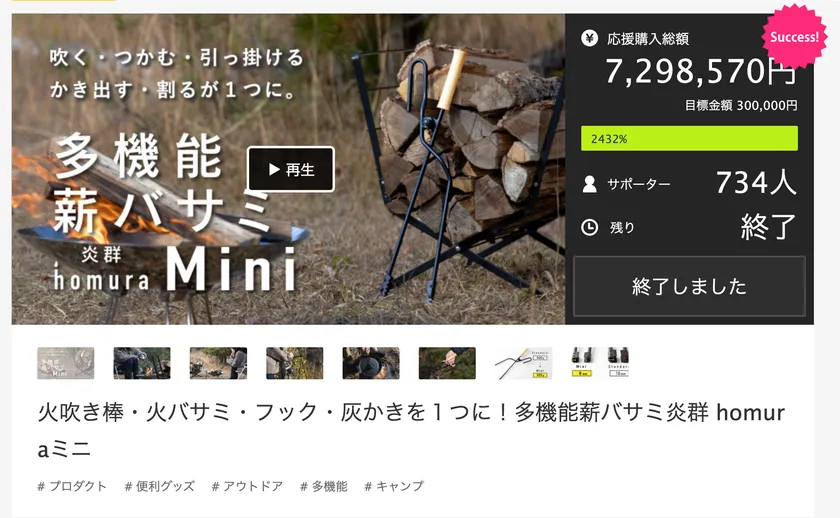 Makuake達成率2,400%超え! 多機能薪バサミ「炎群 homuraミニ」一般発売開始