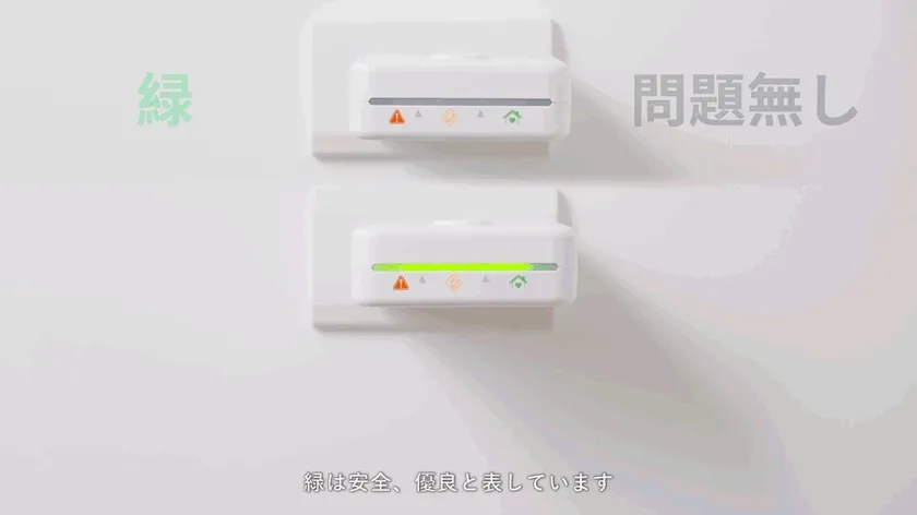 WIRECAREの使い方は、簡単でシンプル。コンセントにさすだけです。これなら、子供でもご高齢者でも、扱うことができます。しかもWIRECAREなら、緑、オレンジ、赤の表示色を確認するだけで安全性を一瞬でチェックできます。