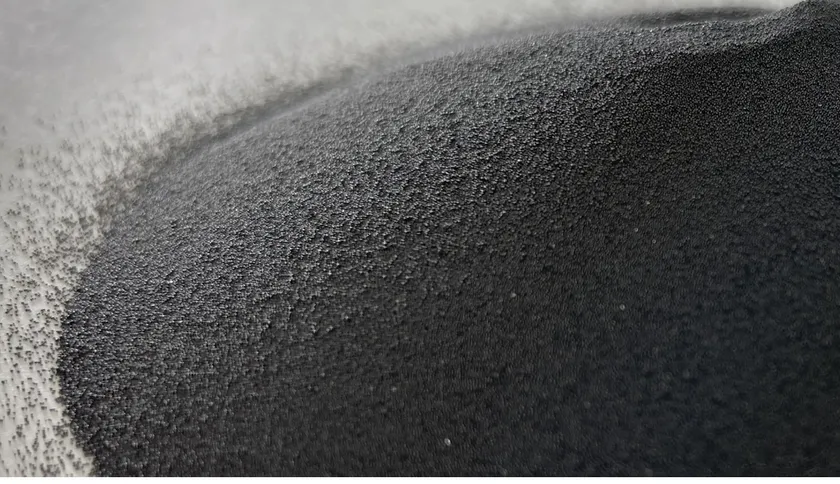 今回開発した新タイプの活性炭は、特殊な合成樹脂を炭化させた後、炉に入れて1,000度近い高温の水蒸気で賦活化したものです。直径0.2mmの小さな球状ながら、全体に微細な穴があるため1g当たりの表面積は1,000~2,500m2程度と大きいです。