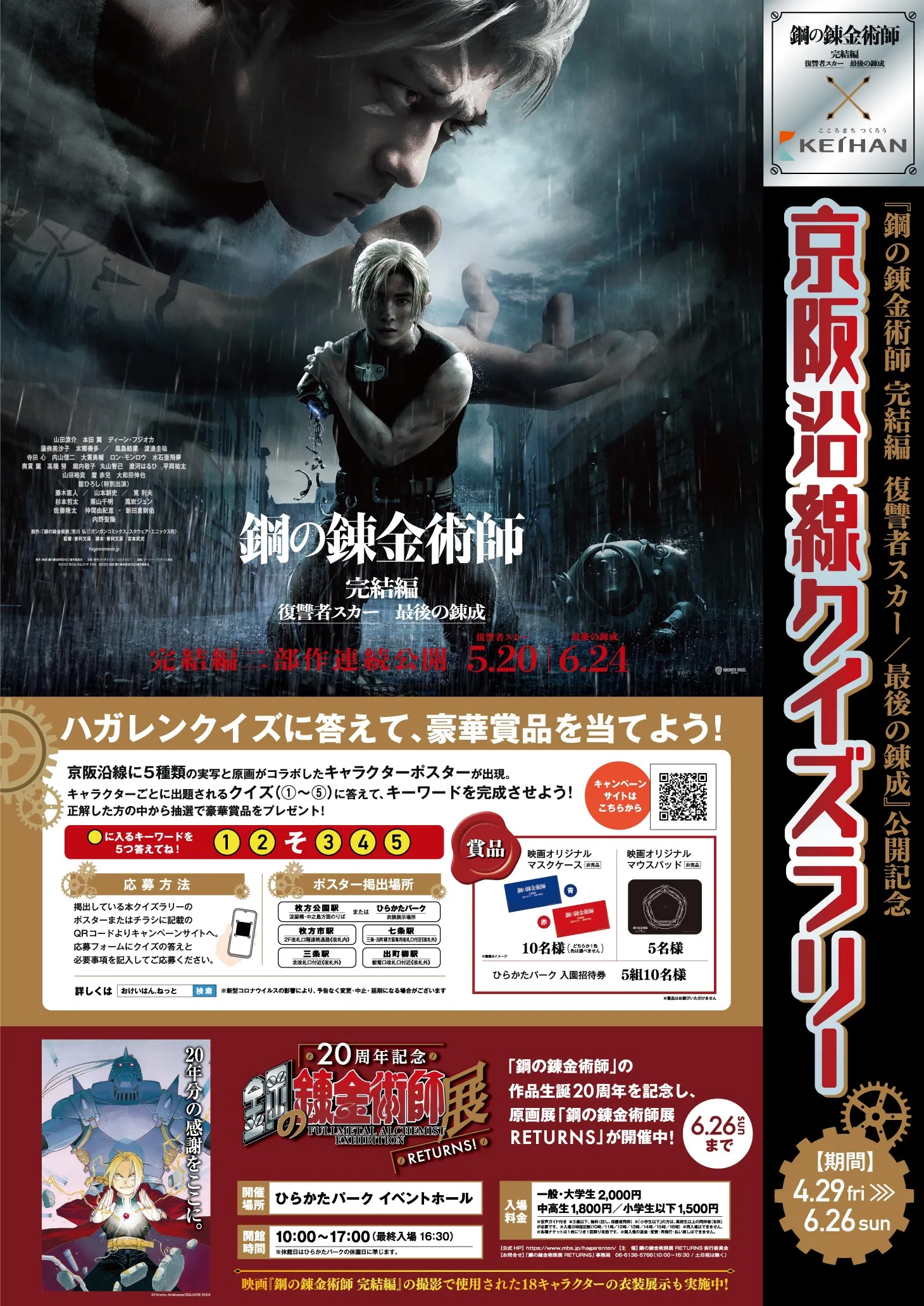 『鋼の錬金術師 完結編 復讐者スカー/最後の錬成』 公開記念 「京阪沿線クイズラリー」を 4月29日(金・祝)より実施します。