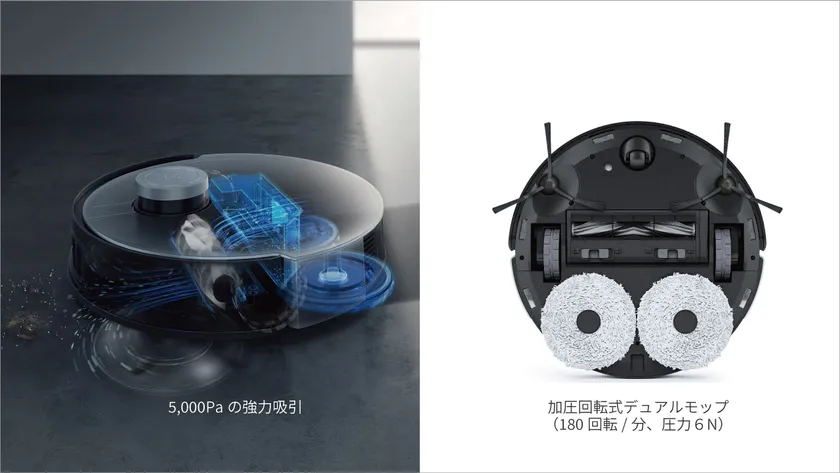 2. 5,000Paの業界最強レベルの吸引力と加圧回転式デュアルモップOZMO TURBO 2.0の2in1で素足も気持ち良い