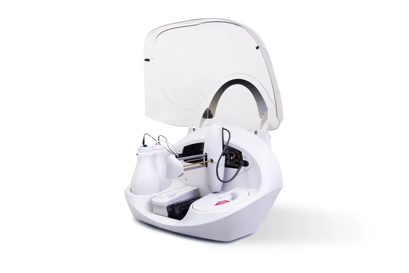 装置内には4つのトレーが設置可能であり、試薬トレーには最大10ボトル、サンプルトレーには最大24検体を配置することができ、最大72検体の連続測定が可能です。測定速度は1時間に最大150検体相当で、短時間に多くの測定を行うことが出来ます。