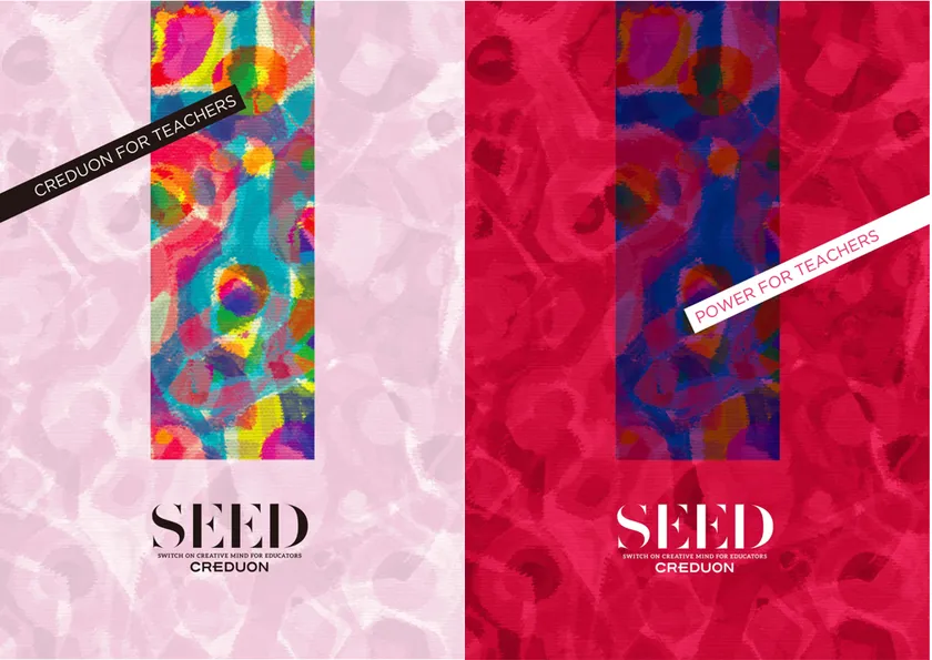 『SEED』は、A4・両面印刷で冊子になる仕様となっており、「CREDUON FOR TEACHERS」は左開きから、「POWER FOR TEACHERS」は右開きからご覧いただけます。オンライン上での閲覧用にデータも複数公開します。