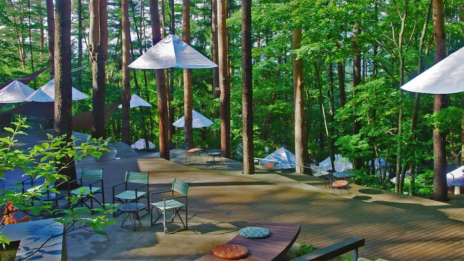 河口湖を望む丘陵に溶け込むように建つ、日本初のグランピングリゾート。焚き火を眺めながら過ごすひと時、広大な赤松の森の中で愉しめる体験型の食事、自然の中で身体を動かす爽快感。常に屋外で快適に過ごせる環境の中、四季を通して新しい価値を提供します。