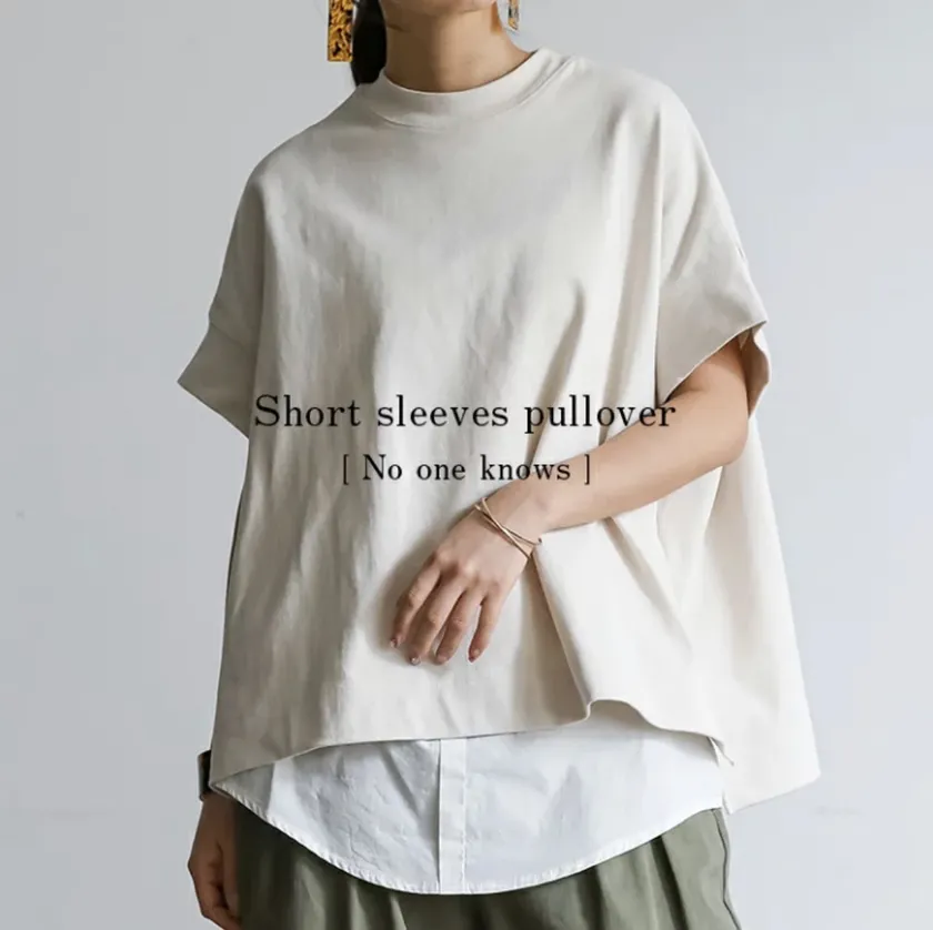 リブ使いきれいめ半袖プルオーバー 再販のオフホワイト
