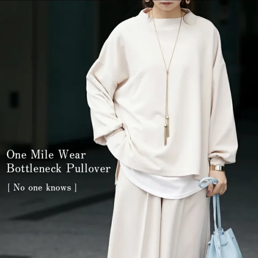 シワになりにくい梨地シリーズ(ボトルネックプルオーバー)