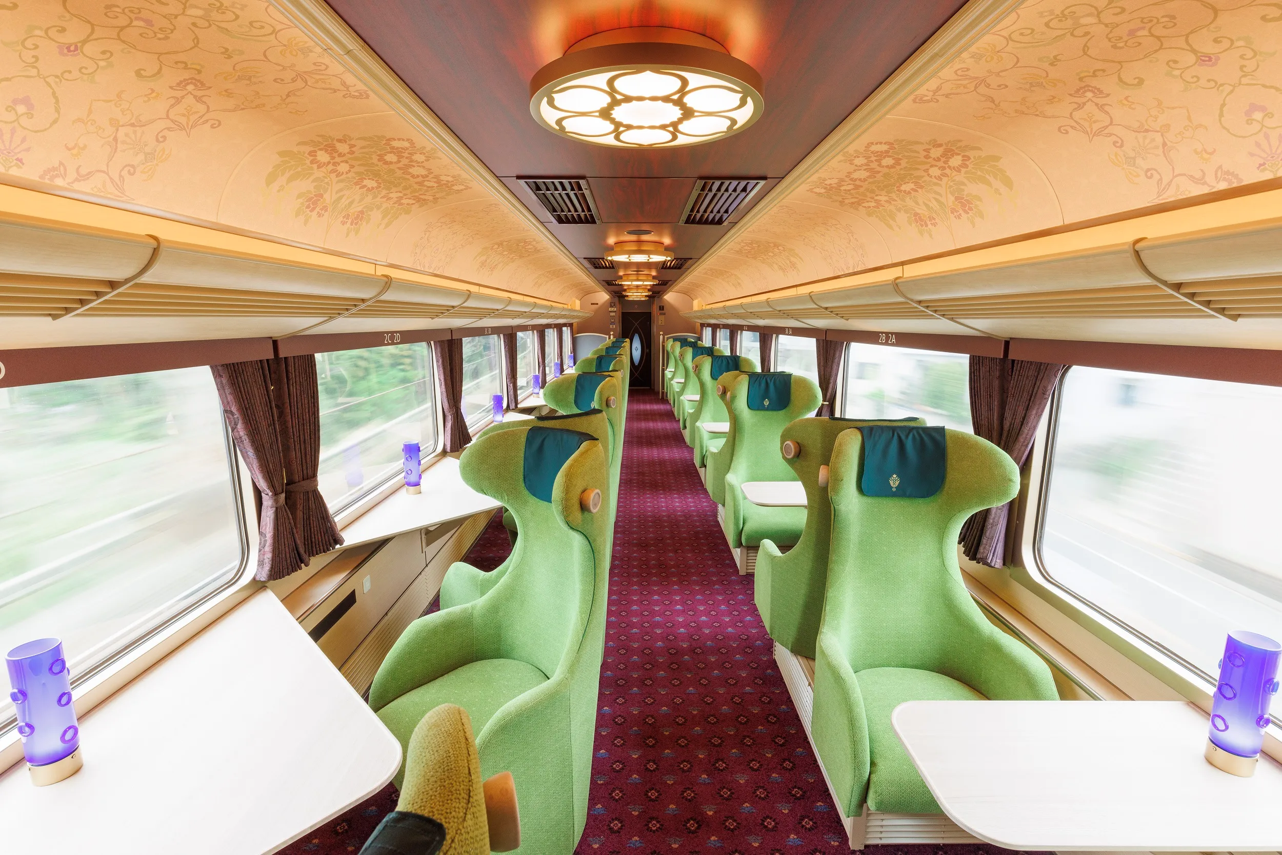 「あをによし」は、既存の特急車両(12200系)をベースに大幅に改造を加え、くつろぎの歴史旅をコンセプトに設計・デザインされています。車両名称は、世界遺産や国宝が数多く存在する古都・奈良にかかる枕詞で、都の美しさをイメージしています。