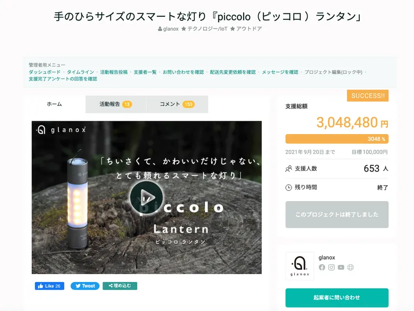 クラウドファンディングで多くのご支援をいただいたミニLEDランタン「ピッコロランタン」は、アウトドア用途だけでなくご家庭での普段使いや防災目的としてたくさんのご支持をいただきました。
