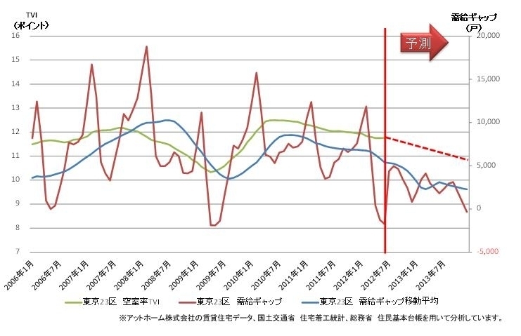 ただし、市場規模が大きいため、これらの影響はほとんど表れておらず、空室率TVIは、ほぼ需給ギャップ通りに推移しています。2013年も引き続き需給ギャップの縮小は継続するため、空室率TVIも改善が継続するものと思われます。