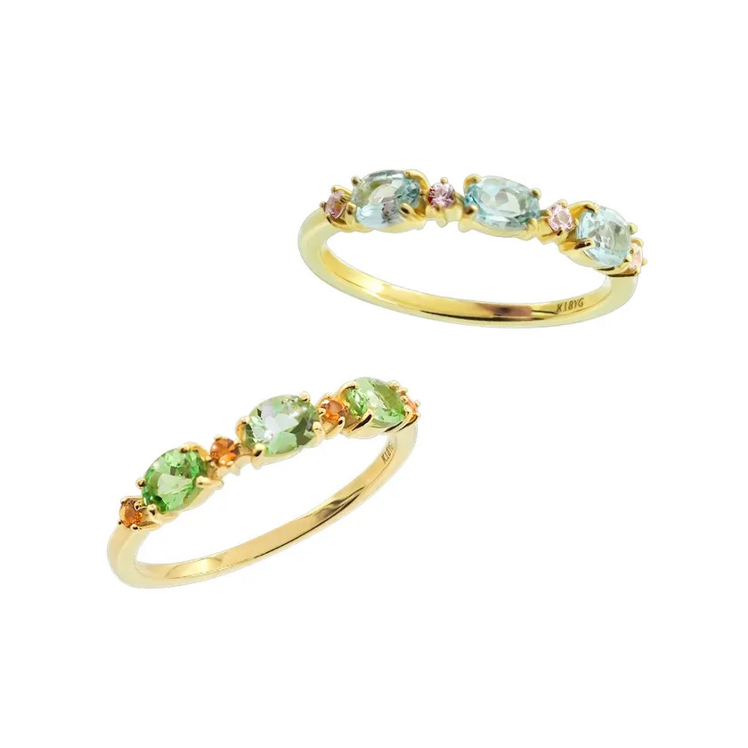 写真左より:K18YG グリーンガーネット/シトリン リング ¥79,200(税込)