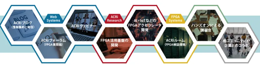 ACRiは、日本で初めて産学連携でのFPGAを活用する高性能なアダプティブコンピューティング・システムの開発およびその設計を効率化するためのFPGA活用基盤の開発を行う研究推進体です。2020年4月に4大学16社が参加して発足し、同年8月に活動の基盤となるFPGA利用環境の無償提供の場『ACRiルーム』を開設しました。