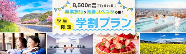 一生にそう何度も経験する機会の無い「卒業旅行」。大江戸温泉物語では、今年は気持ちを切り替えて、国内、近場の温泉宿で想い出に残る「卒業旅行」をお楽しみいただきたいという願いを込めて、特別料金による【学生限定・学割プラン】の販売を開始いたします。