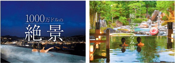左:【長崎県 長崎ホテル清風】 世界新三大夜景に認定されている長崎の夜景を眼下に眺める絶景風呂が自慢。対岸の街の灯り、港を行き交う船、汽笛を聞きながら、非日常の温泉体験ができる宿です。