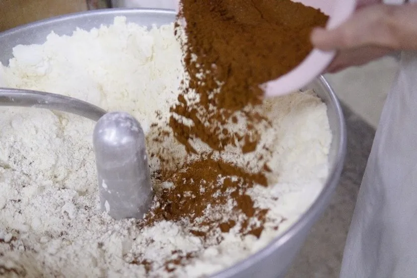 エスプレッソの液体では表現できなかった珈琲の香りが、インスタントコーヒー・クイックマヌの粉末を使用して、生地に練り込むことにより実現。そんな試行錯誤を繰り返して完成したお菓子です。