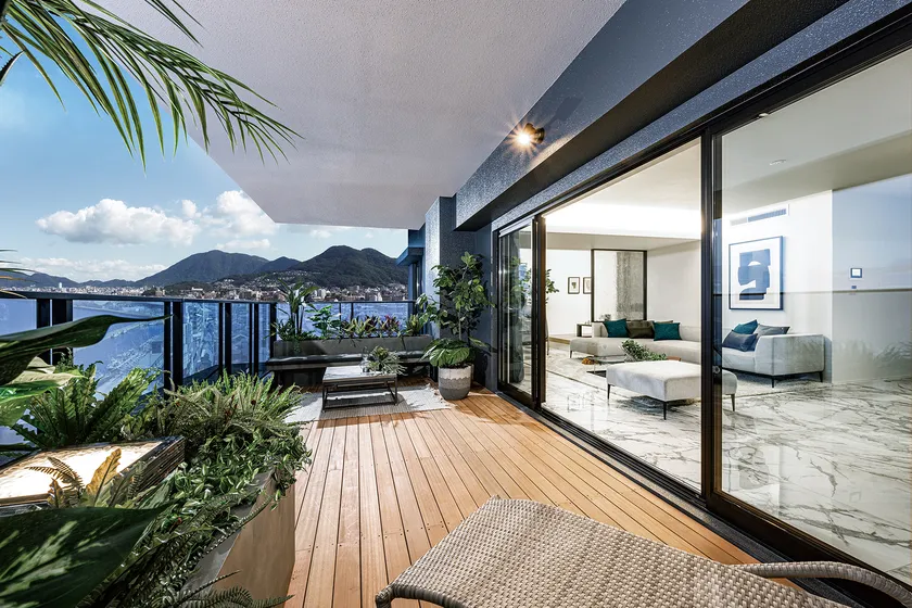ハワイの屋外ポーチリビング「Lanai(ラナイ)」を思わせる、奥行き2.5m~4.5mのワイドなバルコニーは全邸オーシャンビュー。