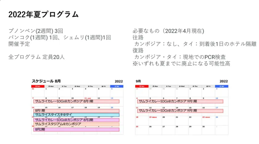 2022年3月はトライアルスタートでしたが、この成功を受け、2022年8月から本格的に再開します。実践女子大学の公式プログラムとして採用されるなど、既に10人以上の参加者が申し込んでおり、最終的には60人の参加を見込んでいます。