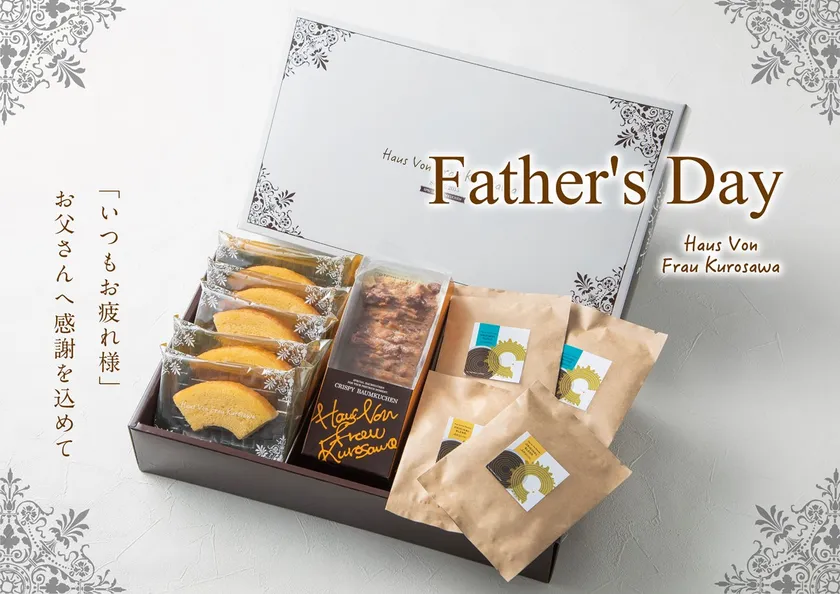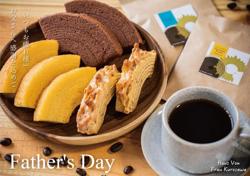 手作りバウムクーヘン専門店Haus Von Frau Kurosawa(ハウスフォンフラウクロサワ、運営:株式会社Crystal Drop、本店:北海道富良野市)は、父の日ギフトセットを販売いたします。人気商品とオリジナルコーヒーがセットになった、特別なギフトセットになっております。