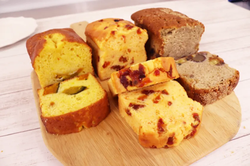 パウンドケーキ (左)栗&さつまいも (中央)トマト&クリームチーズ (右)かぼちゃ