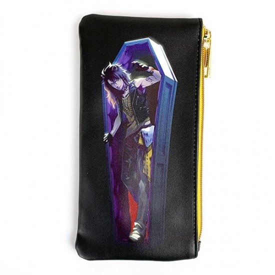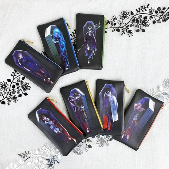 お馴染みの棺デザインのスリムポーチです。各寮の寮長のキャラクターがイラストになっていて、カラーもクールなブラックを基調としています。