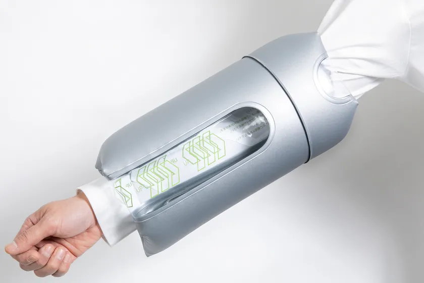 理学療法士のアイデアを基に生まれたリハビリ用塩ビエアー製品。空気圧でこわばった筋肉を持続的にストレッチすることで、筋肉の緊張を和らげるリハビリ補助用具です。2020年9月より販売。