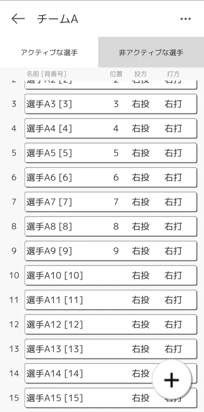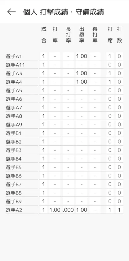 1) 少年野球などの特別ルールとして、選手15人が全員打席に入るなどの記録を入力することも可能。