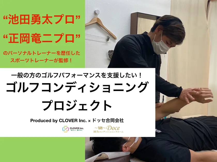 “池田勇太プロ”や“正岡竜二プロ”のパーソナルトレーナーを歴任した「ドッセ鍼灸コンディショニングルーム三軒茶屋店・経堂店」を運営するスポーツトレーナー高山慈仁氏が監修した、ゴルフパフォーマンス向上のための“オリジナルゴルフコンディショニングプログラム”を提供します。プロゴルファーが受けているゴルフコンディショニングを一般の方にも受けていただくため、当プロジェクトが始動しました。