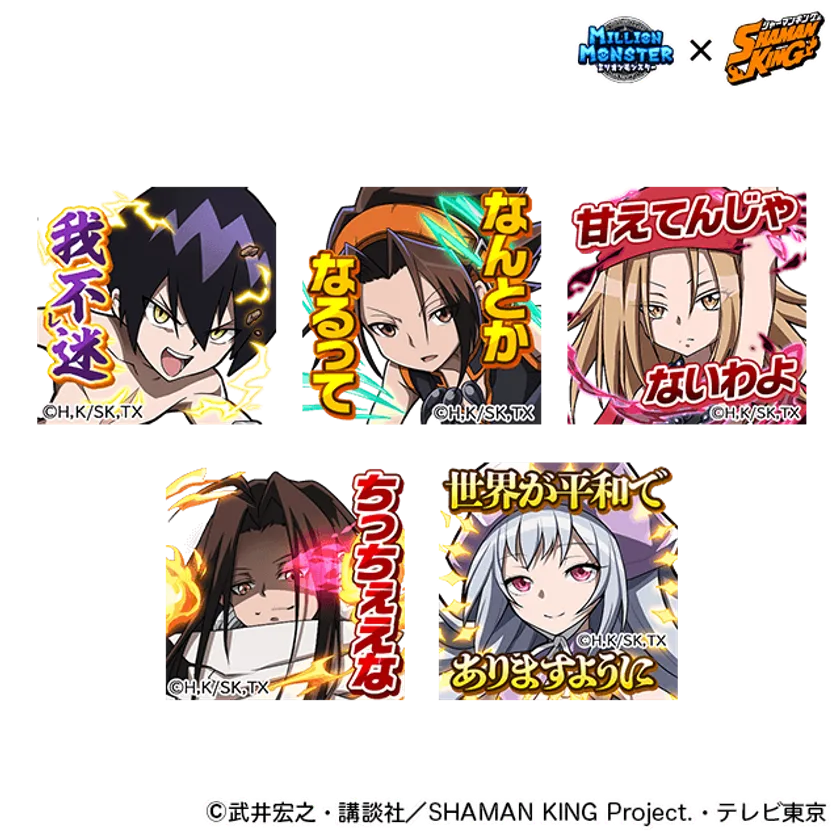 TVアニメ『SHAMAN KING』の人気キャラ「麻倉 葉」「ハオ」「道 蓮(※)」「アイアンメイデン・ジャンヌ」「恐山 アンナ」が獲得できるコラボ限定ガチャが登場します。