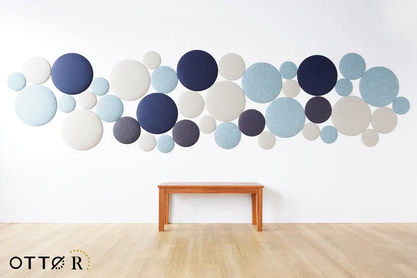 オフィス向け吸音パネル「OTTO R(オットー・アール)」は2021年6月の発売以来、豊富なカラーと手軽さが好評でオフィス以外でも保育園や大学、一般のご家庭まで幅広くご使用いただいております。既存の4種の形状に加え新たに登場する丸型は同形状で3サイズ(直径20cm、30cm、45cm)あり、大きさの異なるパネルを組み合わせることでこれまでと違ったクリエイティブなデザインが可能に。また直径20cmのパネルは一般のご家庭でも取り入れやすいサイズで、壁のちょっとしたスペースや小さなお部屋への設置にもおすすめです。設置方法は付属のマグネット、または両面テープで壁に貼り付けるだけなので、組み合わせを楽しみながら様々なシーンに合わせた快適な音環境づくりが出来ます。