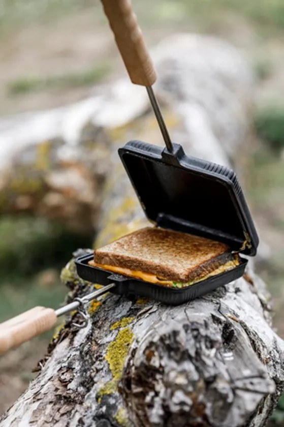 「ショート丈のサンドイッチ・ワッフルメーカー」は、従来のモデルより20cmほど柄が短くなり扱いやすくなりました。蓄熱性・保温性に優れた鋳鉄製ゆえに、食材を一気に焼き上げて旨味の詰まったサンドイッチやワッフルが出来上がります。