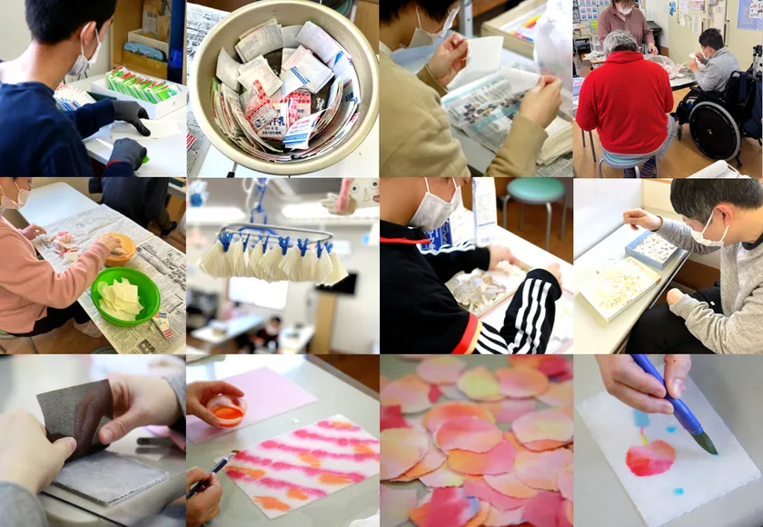 福祉施設に通う皆さんのご協力のもと新たに返礼品に手づくりの「ちぎり絵御朱印」をご用意。「役に立てるのがうれしい」「みんなにもらって欲しい」。本当の意味で互いの福祉活動になっています。