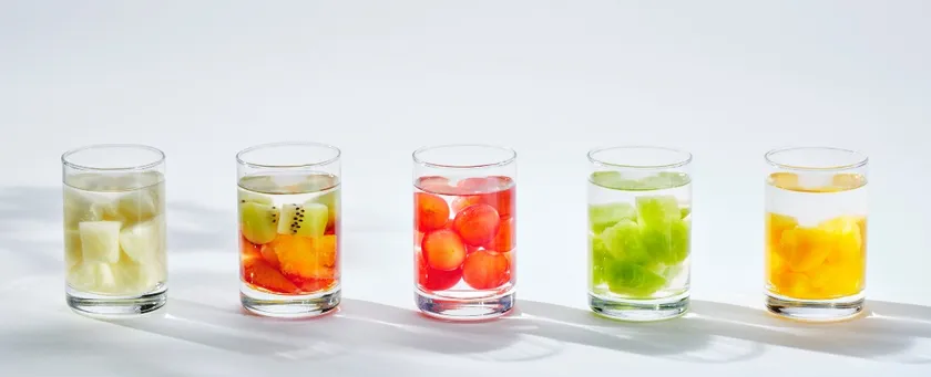 季節に応じて、旬のフルーツをふんだんに使用した生ゼリー※5~6種を常時提供いたします。※生ゼリーとは、旬のフレッシュフルーツを加熱加工処理せず、フルーツの風味を最大限引出したゼリーです。